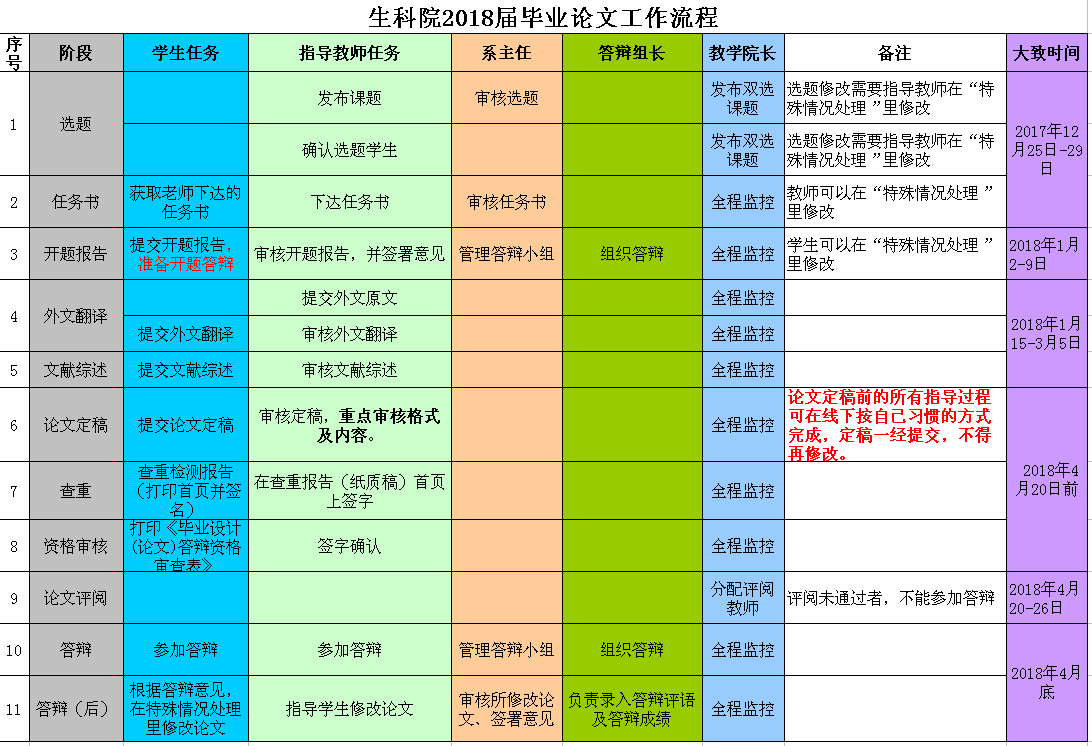 2018届毕业论文工作即将开始,具体工作流程见下图,请大家按照时间节点完成各流程工作。