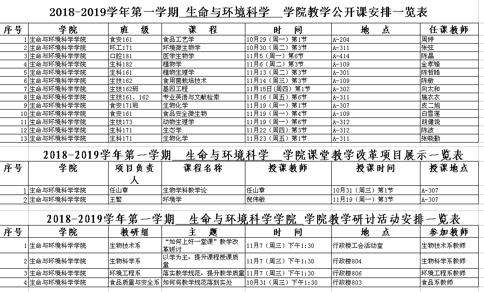 2018-2019-1学期期中教学检查教学活动安排