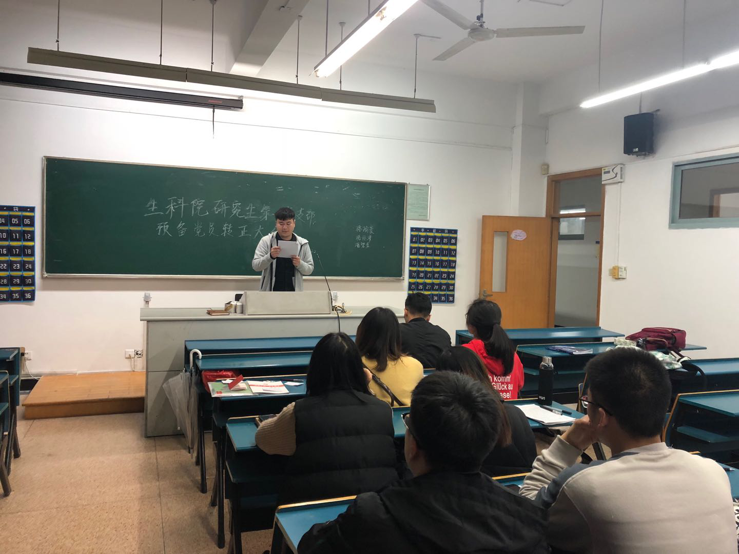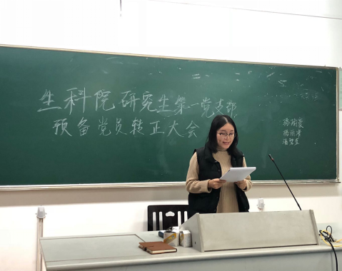 2018年12月3日16:50,黄色仓库 研究生第一党支部预备党员转正大会在教学楼a楼213准时召开。研究生第一党支部书记岳龙华老师出席并主持了本次会议。经过一年的考察,骆丽清、骆瑜豪、潘碧莹共三位同志通过支部大会讨论并按期转正。