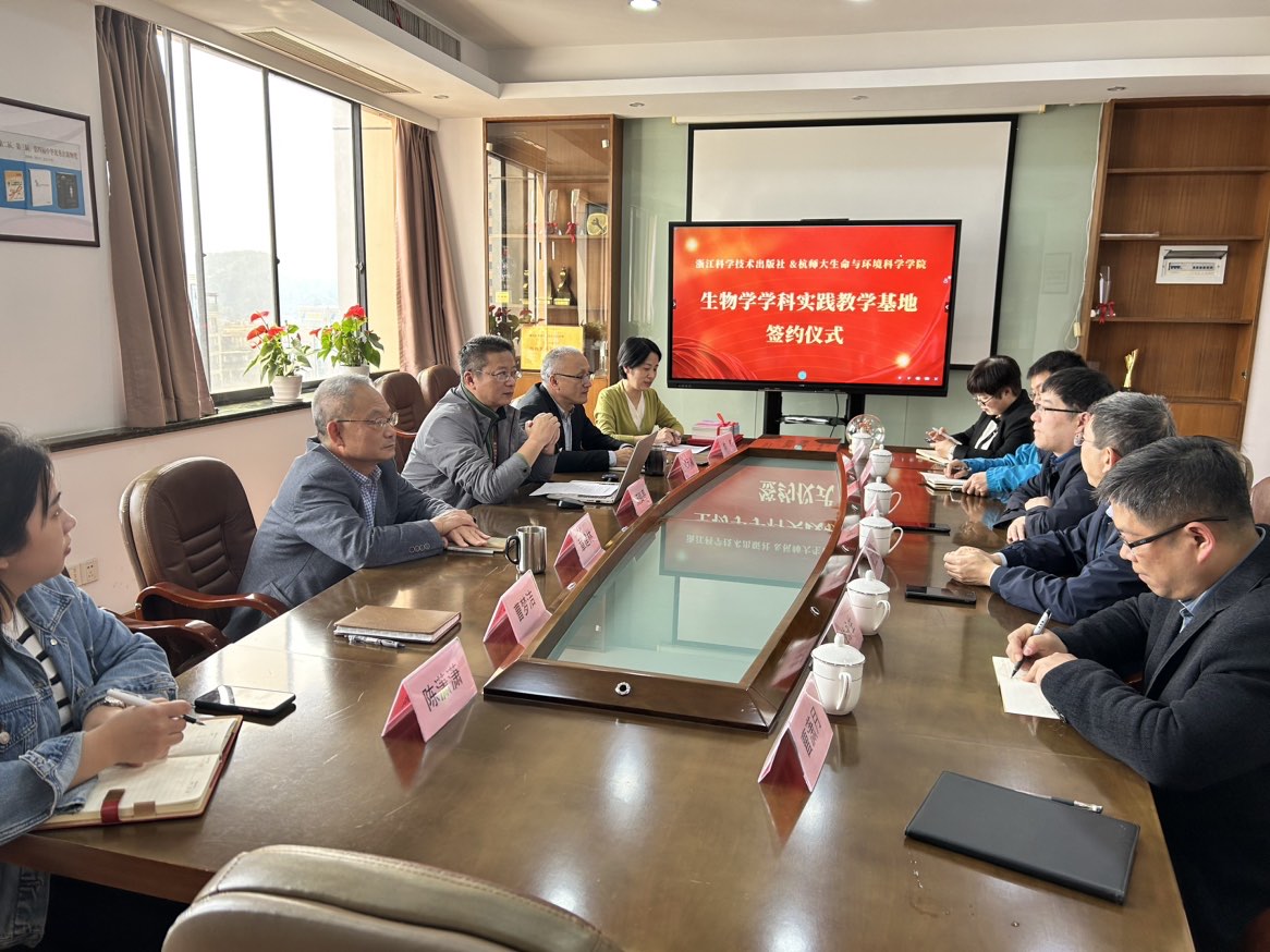 4月26日下午,黄色仓库 党政班子领导、生物科学系主任和相关科室主任应邀前往浙江科学技术出版社参加生物学学科实践教学基地挂牌仪式。