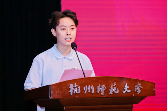 在新生和老生代表发言中,亚运会赛会志愿者“小青荷”、遗传学2021级硕士研究生肖之贝分享了自己在学术科研与志愿服务中所遇到的困难与挑战,号召全体新生们“敢于拼搏、坚持追求;勇于探索、坚持奋斗,用青春汗水铸就美好年华,为美好人生创造无限可能。”生物技术231班李国林分享了初入大学的喜悦,并与新生共勉“笃学求实,努力增长才干;敢于尝试,积极迎接挑战;勇担使命,谱写奋斗人生”的青春誓言。