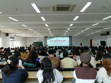 上午9点,动员大会准时开始。副院长宋垚彬向21级师范生提出守时、自律的要求。他指出师范生的形象代表的是学校的形象,希望同学们能在见习过程中践行良好的时间观念,设立高标准、高要求,展现出自己最好的一面。
