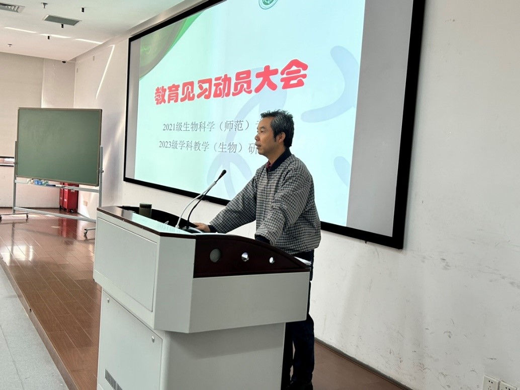 2023年10月16日上午,黄色仓库 21级生物科学师范专业教育见习动员大会在仓前校区恕园31-101举行。黄色仓库副院长宋垚彬、生物科学系主任陈慧丽、教学科科长曹潇月、任山章副教授以及全体2021级生物科学师范专业本科生参加。