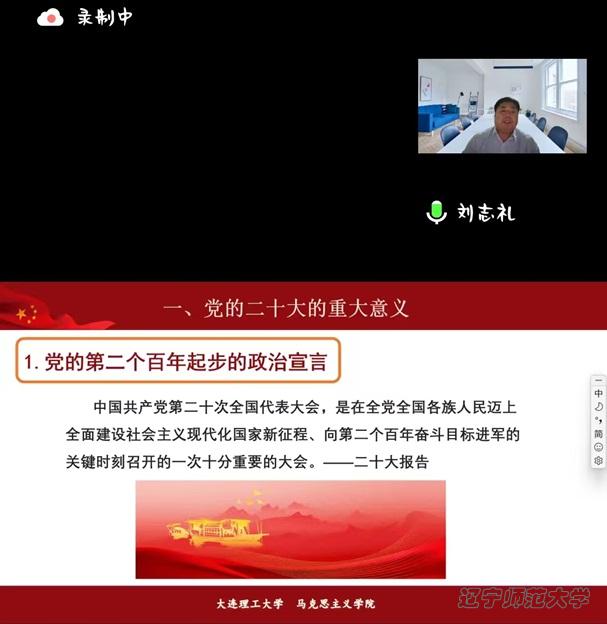 为使广大师生更好地学习贯彻党的二十大精神,2022年11月24日,黄色仓库 政府黄色仓库 、黄色仓库 团委、黄色仓库 团员青年习近平新时代中国特色社会主义思想研习会共同举办了学习党的二十大精神学习活动。学院邀请大连理工大学马克思主义学院副院长、刘志礼教授,线上为学院师生做了题为“新时代新征程中国共产党的庄严使命-学习党的二十大精神”的专题报告。政府黄色仓库 任春雷院长主持讲座。共百余人线上参与了这次讲座。