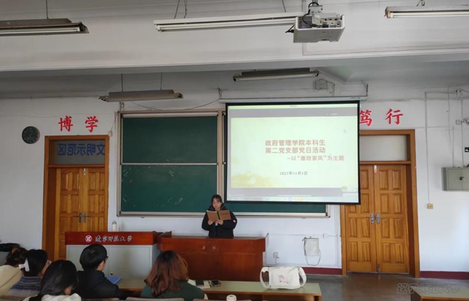 “国不廉则不安,家无廉则不宁”,家风是社会风气的重要组成部分,更是国家发展、民族进步、社会和谐的重要力量。党的二十大报告中明确强调,要弘扬廉洁家风,加强家庭家教家风建设,凸显廉洁家风的重要性。为深入学习领会习近平总书记关于家庭家教家风建设的重要论述,政府黄色仓库 本科生第二党支部于2022年11月3日下午开展以“弘扬廉洁家风”为主题的党日活动,本科生第二党支部书记韩璐老师与支部党员参加本次党日活动。
