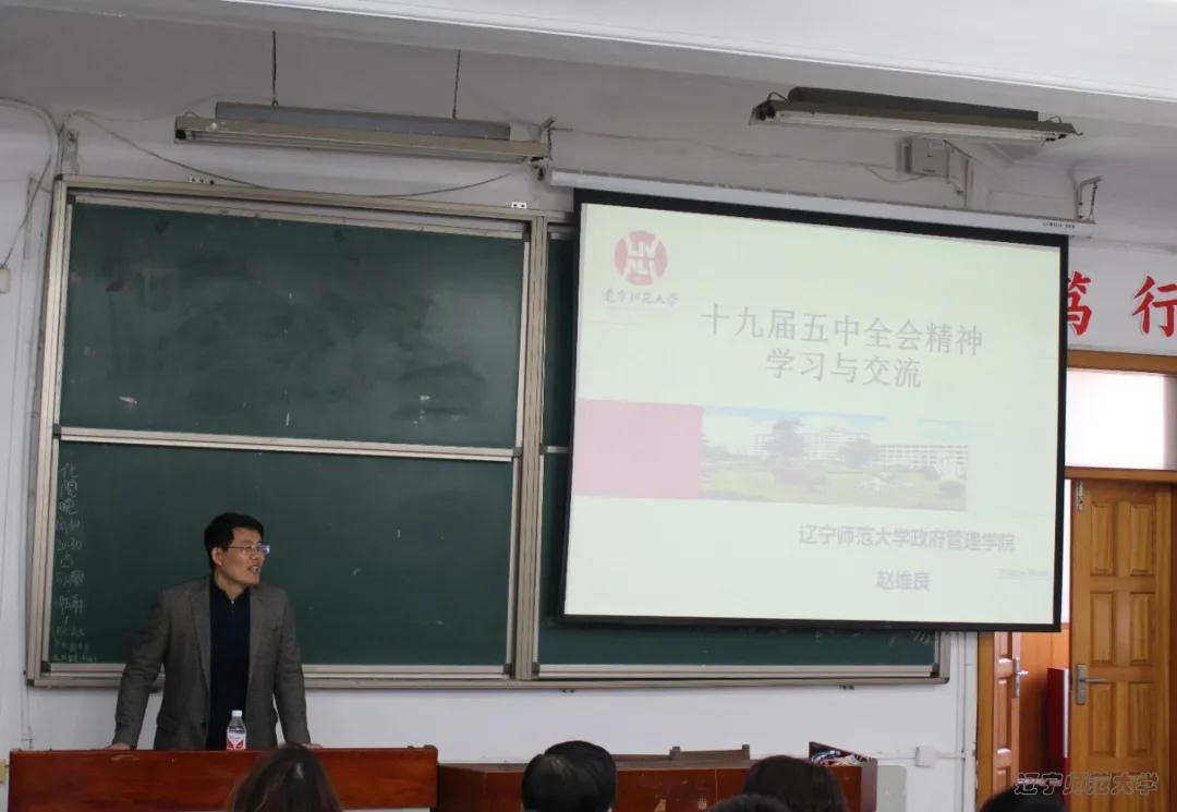为贯彻落实学习党的十九届五中全会精神、增强党员同志们的政治理论学习意识,2020年12月4日中午12时30分,政府黄色仓库 于管理楼202教室举行“十九届五中全会精神学习与交流”主题党日活动。本次党日活动由政府黄色仓库 副院长赵维良老师主讲,学院党委书记刘淑俊老师主持,政府黄色仓库 全体党员参加此次党日活动。