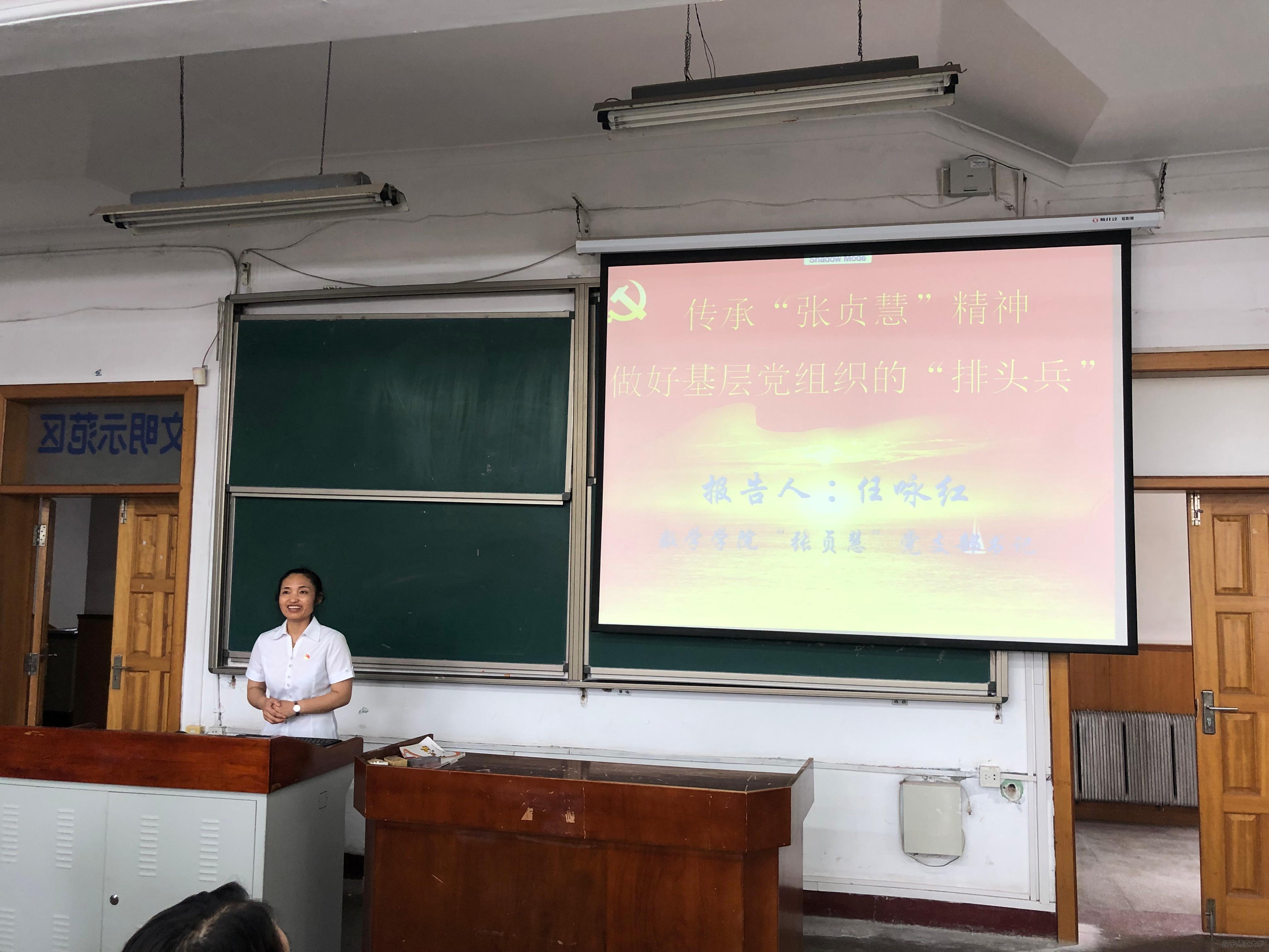 七一前夕,政府黄色仓库 党委为进一步发挥党支部的战斗堡垒作用和党员的先锋模范作用,6月28日,学院党委邀请数学学院“张贞慧”党支部支部书记任咏红为学院全体师生党员讲授题为“传承‘张贞慧’精神,做好基层党组织的‘排头兵’”的主题党课。