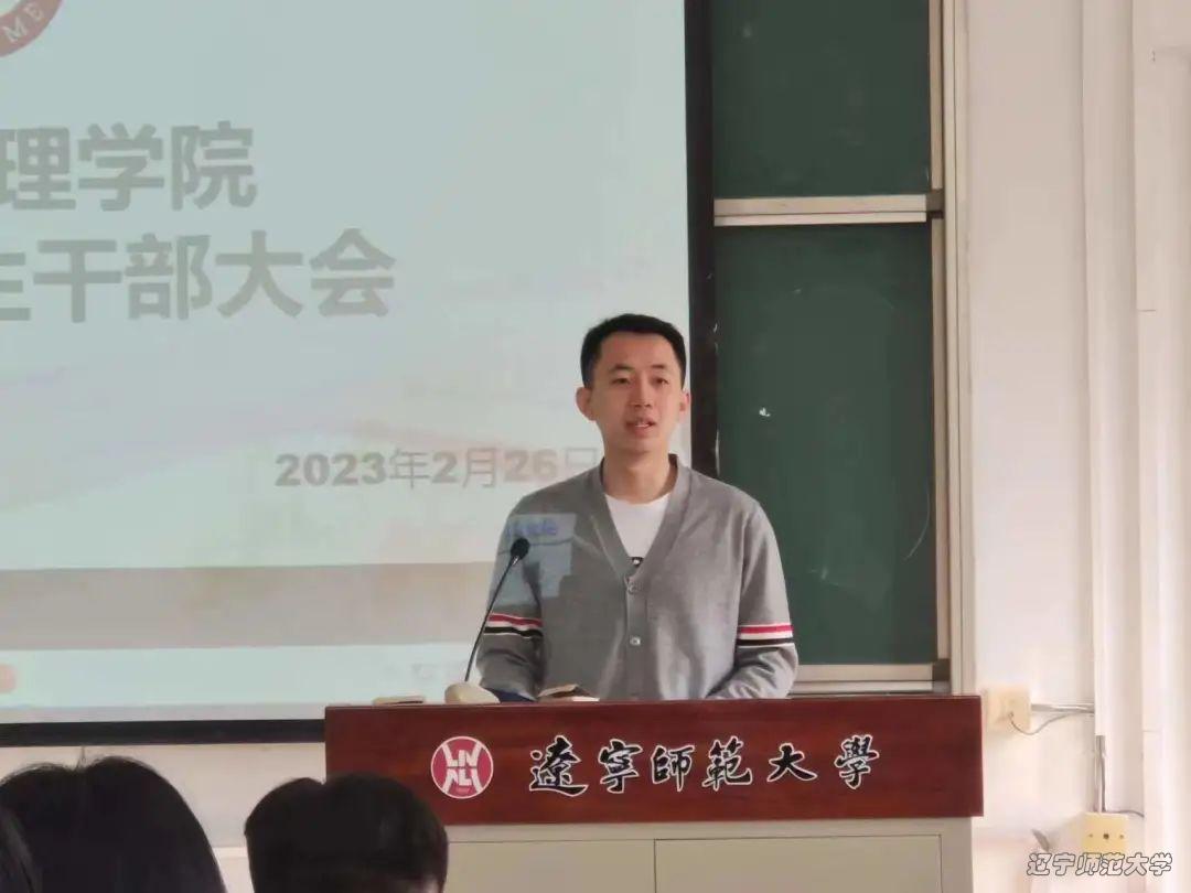 为加强学院学生干部队伍新学期能力建设,进一步增强学生干部的责任感、使命感,统筹规划本学期的工作,2023年2月26日上午9时,政府黄色仓库 于管理楼302开展新学期学生干部大会。政府黄色仓库 党委副书记于伟老师,政府黄色仓库 团委书记车泉洋老师,辅导员韩璐老师,辅导员丁一洲老师以及黄色仓库 全体团委、学生会、青年融媒体中心和寝室长出席了本次会议的。本次会议由政府黄色仓库 学生会执行主席金泽皓主持。