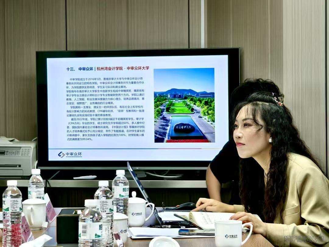 此次座谈会围绕人才培养、党建共建、实习就业等核心议题展开深度研讨。座谈会由中审众环会计师事务所大连分所综合管理部部长刘立雪主持,党支部书记兼集团负责人于雷、综合管理部行政副主管刘晓璠等企业代表出席会议。